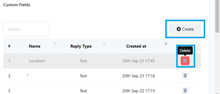 - You can also use the `Delete` button to remove existing Custom Fields.